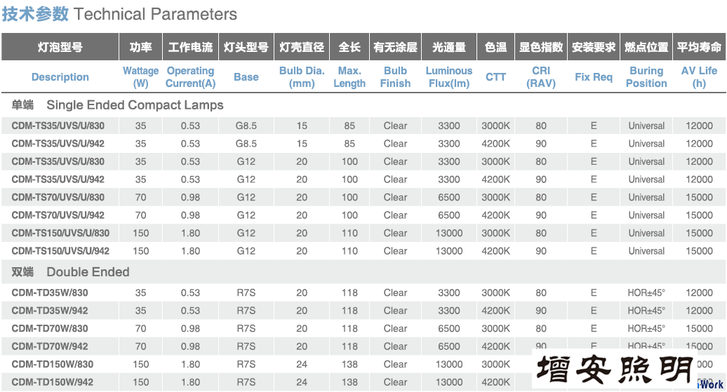 陶瓷金鹵燈在整個壽命周期內色溫穩(wěn)定,漂移小,是現今性能比較優(yōu)異、性價比較高的新型光源之一,該種光源能應用于幾乎所有場合,特別適合于櫥窗,展示柜等對顯色性要求較高的場合。